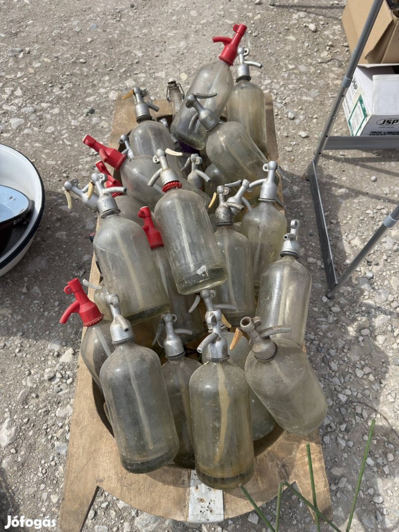 Eladó a képen látható 28 darab klasszikus szódásüveg (szifon), vegyes állapotban.