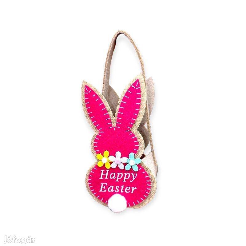 Vidám rózsaszín filc húsvéti kosár nyuszi díszítéssel. Praktikus választás tojásgyűjtéshez, apró ajándékokhoz vagy dekorációként, hogy ünnepi hangulatot teremtsen otthonodban.