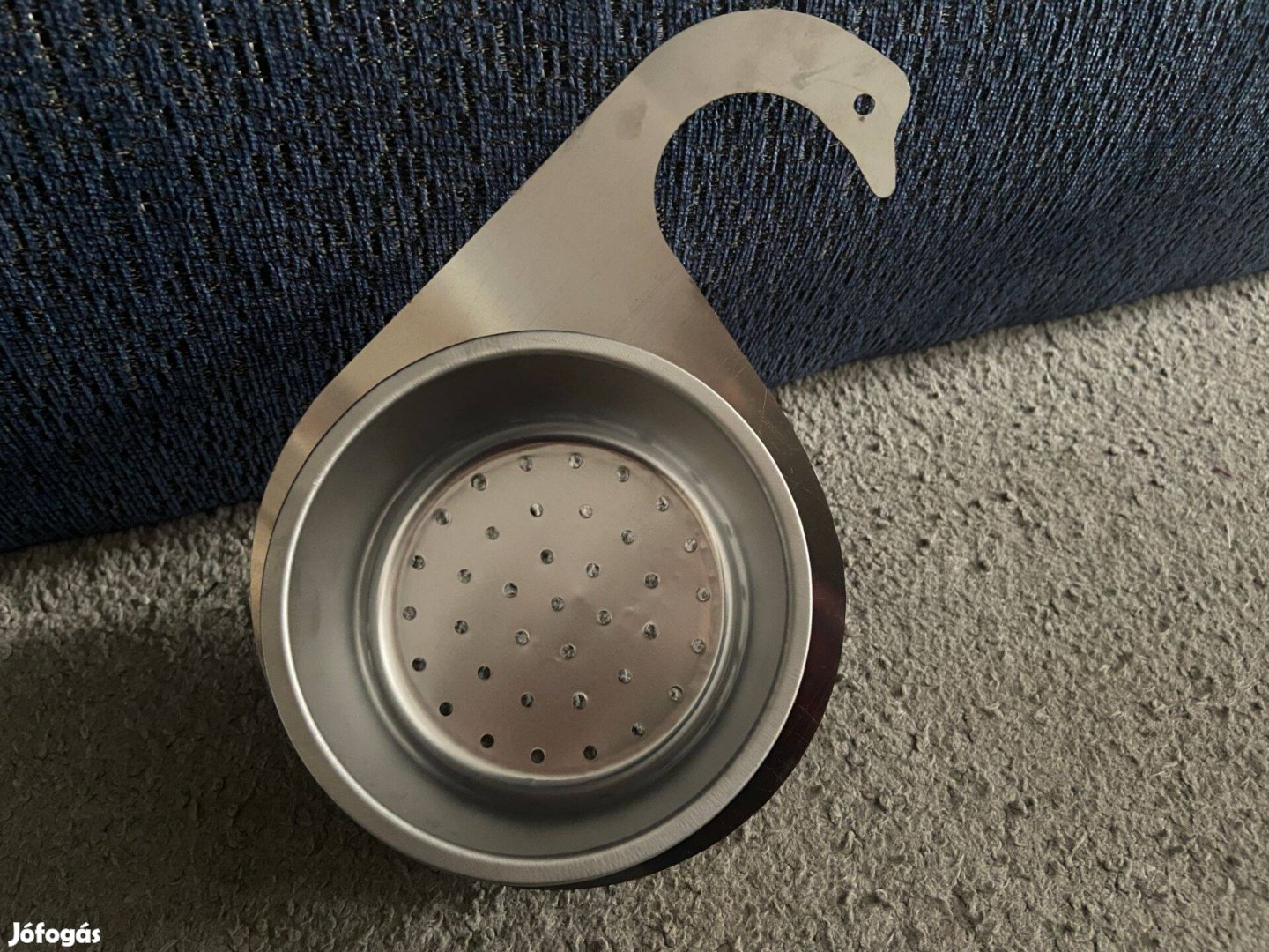 Mosogatóra akasztható fém szűrőkosár a konyhai maradékok előzetes kiszűrésére mosogatás előtt. Átmérője 11 cm.