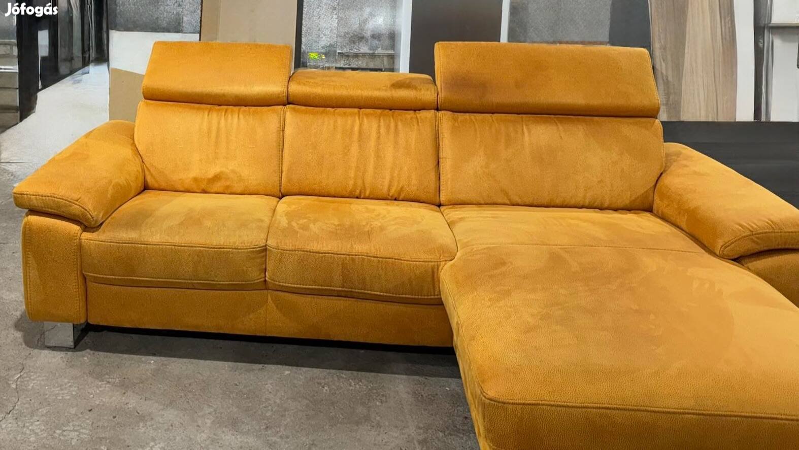 Eladó egy modern L-alakú sarokülő, állítható fejtámlákkal, különleges, velúr hatású mikroszálas kárpittal.