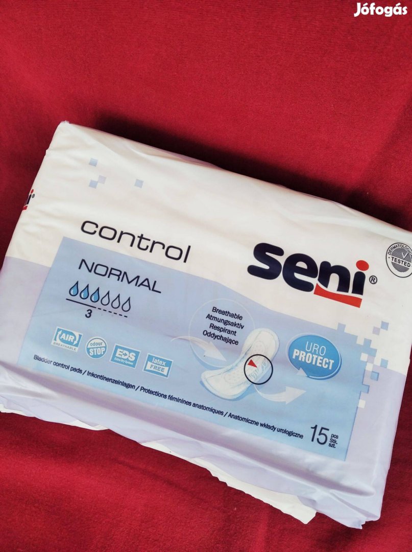 Eladó a képeken látható Új csomagolásában,Seni Control Normal női inkontinencia betét. Egy csomagban 15 db van,600Ft/cs