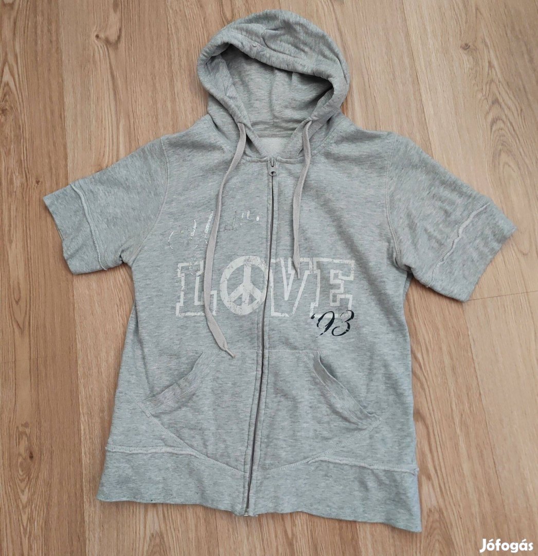 Sportos szürke pamut női kapucnis felső M
