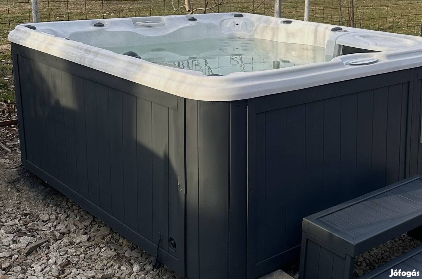 A képeken látható, kiváló állapotú amerikai Sundance típusú jakuzzi, amely kényelmes pihenést és prémium masszázs élményt biztosít.