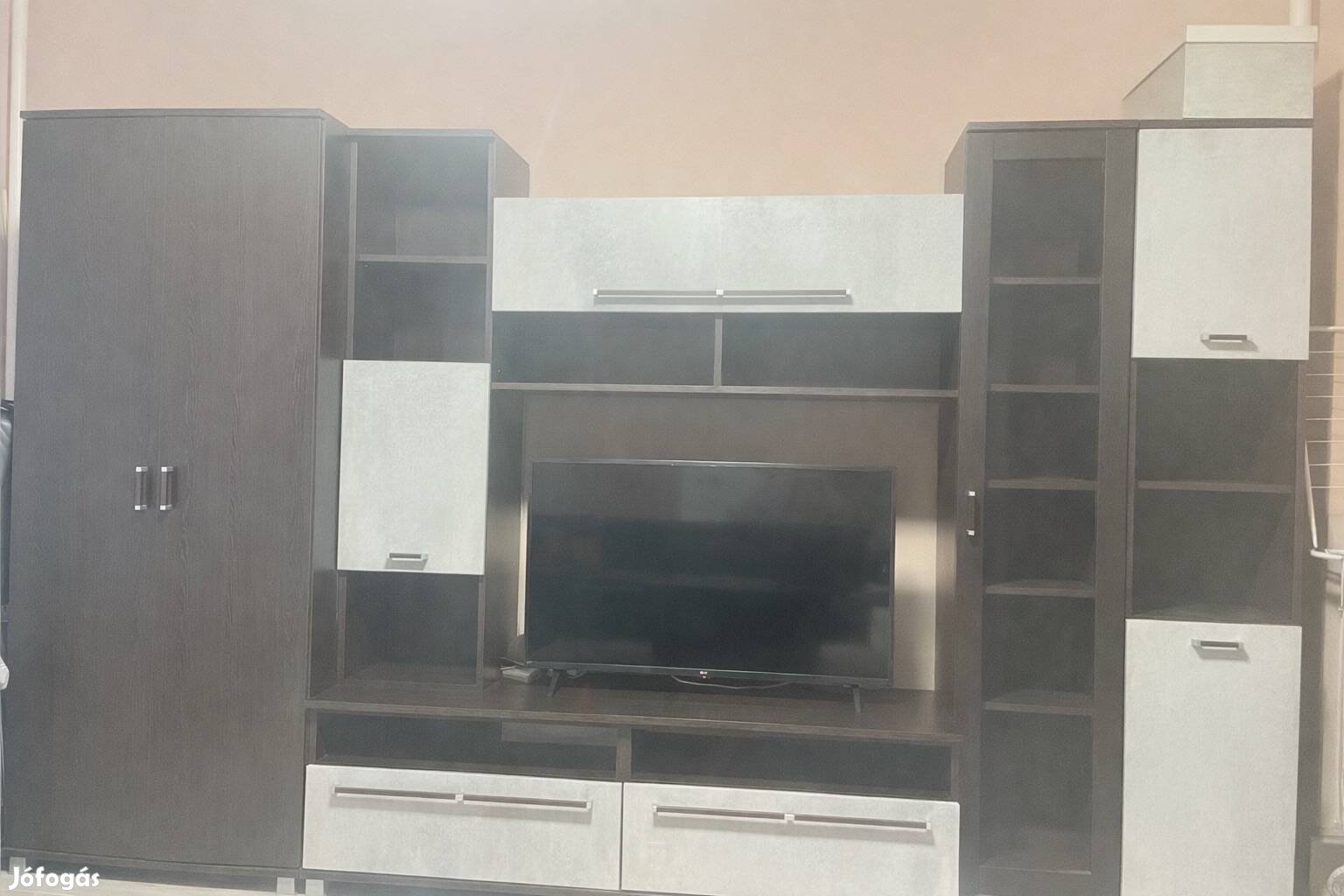 Eladó a képen látható szekrénysor, a szürke rész fólia, ha levesszük világos szinű, ahogy a képen is látható.