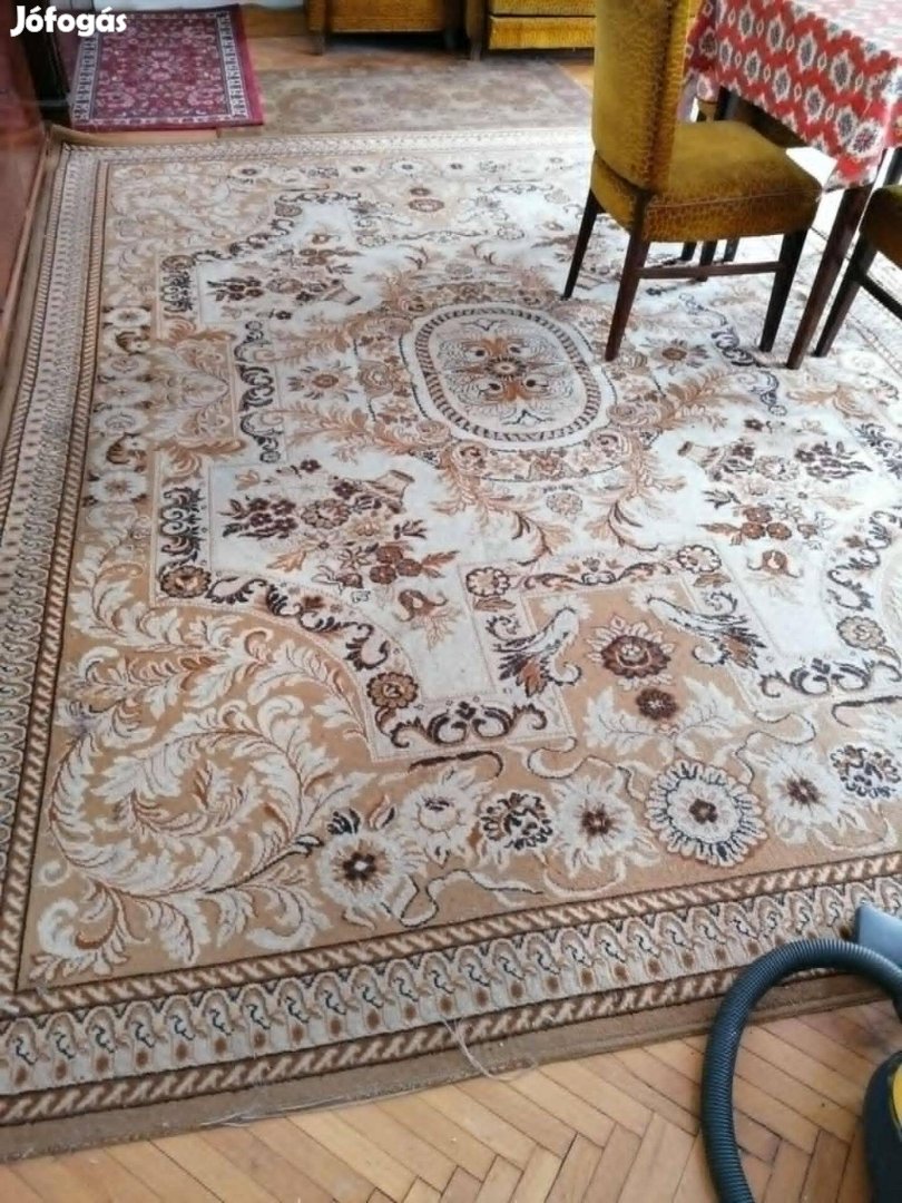 Miskolcon a Görgey utcában eladó 2,5x3,5 nagy méretű szobaszőnyeg, világosabb barnás színű, használt, de viszonylag jó állapotú, nem foltos, nem szakadt. A helyszínről azonnal elvihető.