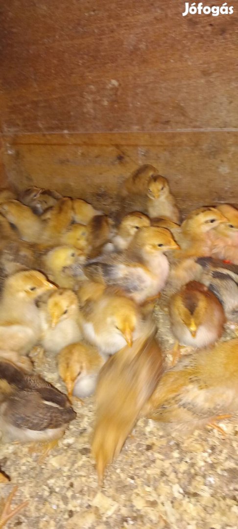 Vegyesen tartott sárga és fogoly szinű magyar tyúkoktol 3 hetes előnevelt csibék eladók!