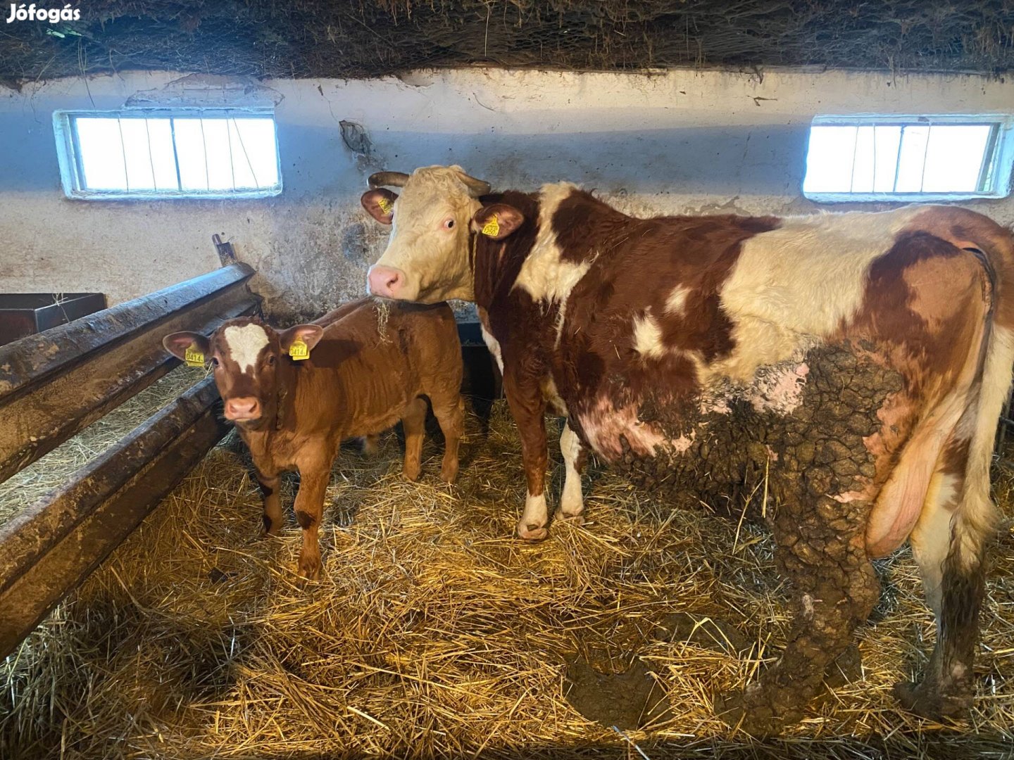 Tejelő tehén 2,5 hónapos limuzin bikaborjával, négyesmentes állományból eladó!
