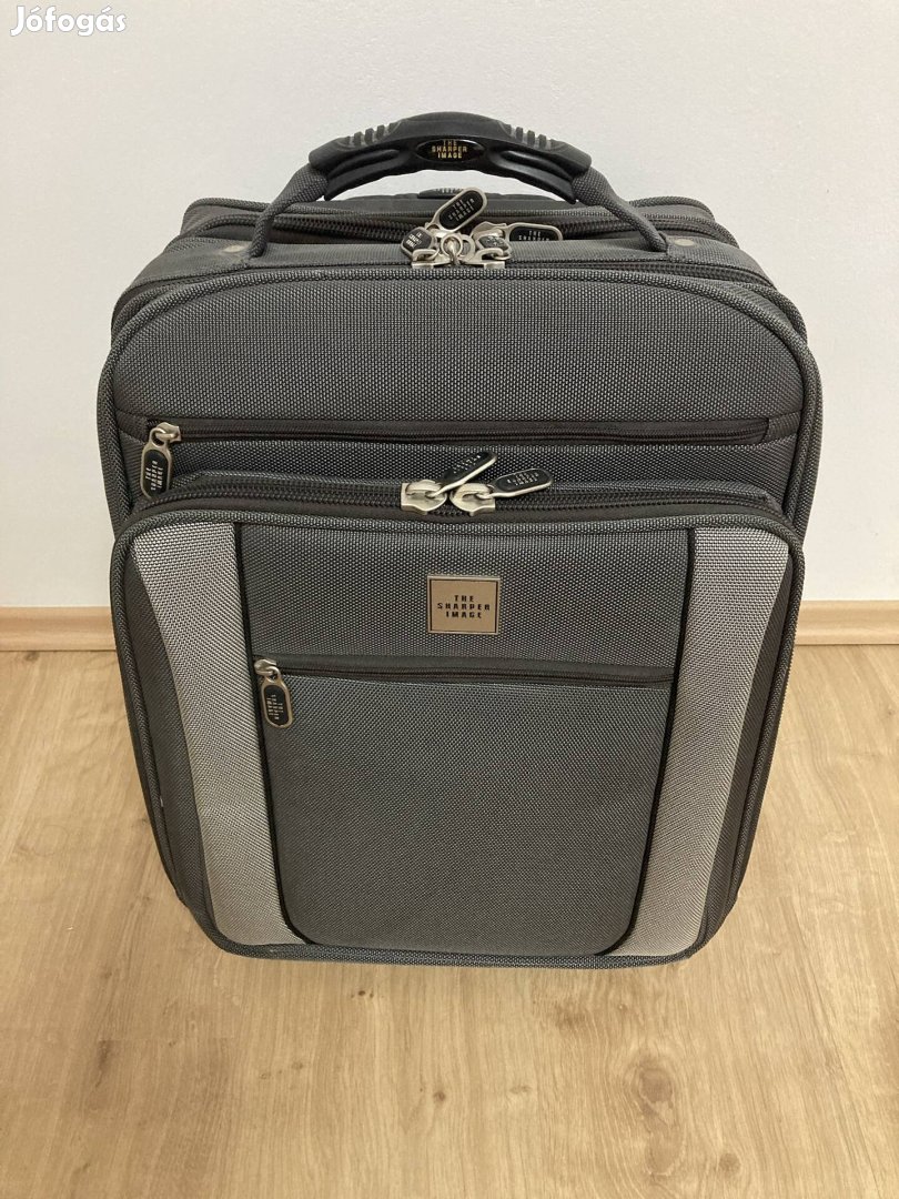 The Sharper Image-Gurulós húzható kisbőrönd.Párszor használt,szinte új tökéletes állapotban van.Praktikus tároló zsebek(lásd a fotókon).Anyaga és a cipzár erős anyagból vannak.Méretei:oldalt a cipzárokbál szélessége:29cm;magasság a fogótól a kerékig:50cm;hátul a szélesség:30cm;magasság ha a hosszabító fogó teljesen kihúzva:103cm. Súlya üresen:3.9kg. Ára:13.500Ft. Megtekinthető és átvehető személyesen Miskolcon vagy utánvéttel tudom küldeni.Ha bármi kérdésed lenne ezzel kapcsolatosan,akkor kérlek írd meg nekem privátban.Köszönöm!