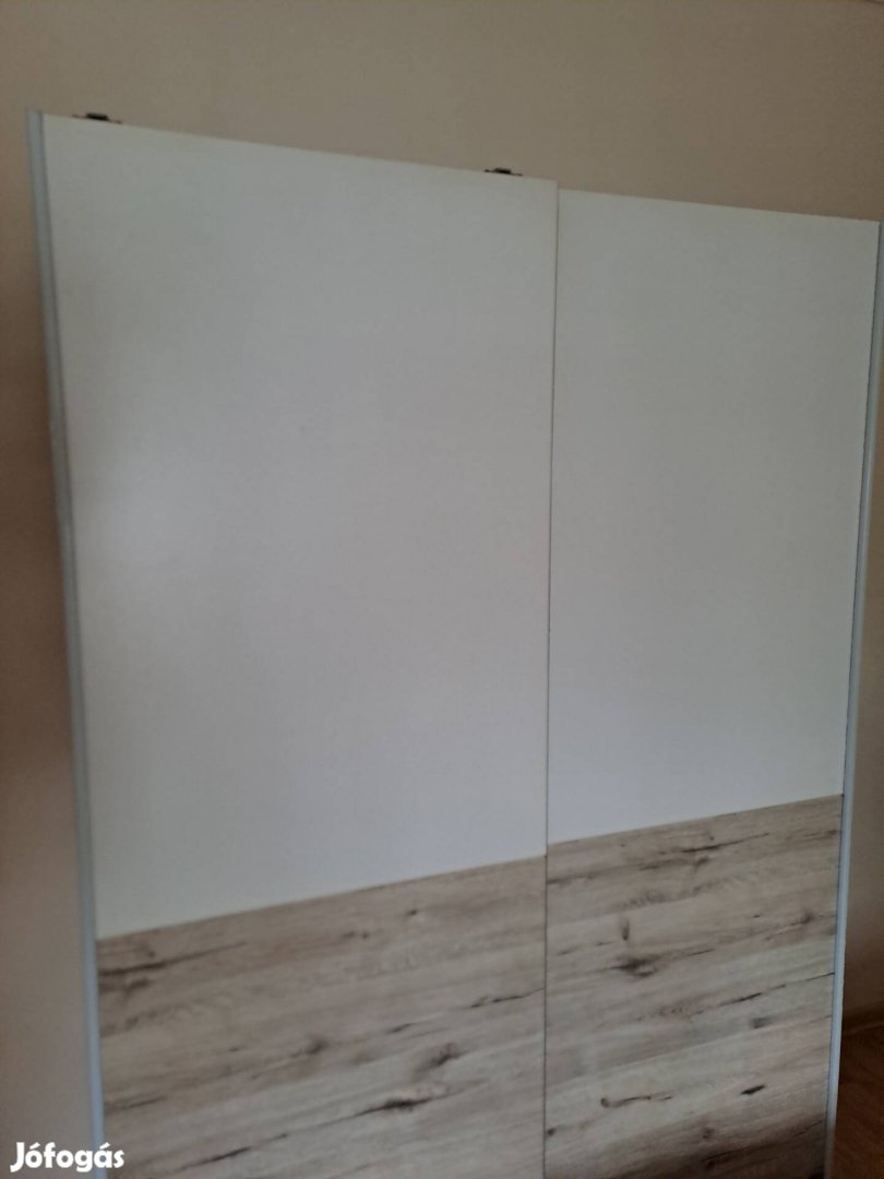 Tolóajtós gardrób szekrény eladó! Méretei 125x195x60cm. Egyik oldalt illetve felső részen polcos, a többi akasztós. Hozzá illő nappali szett is kérhető. A hirdetéseim közt megtalálja.