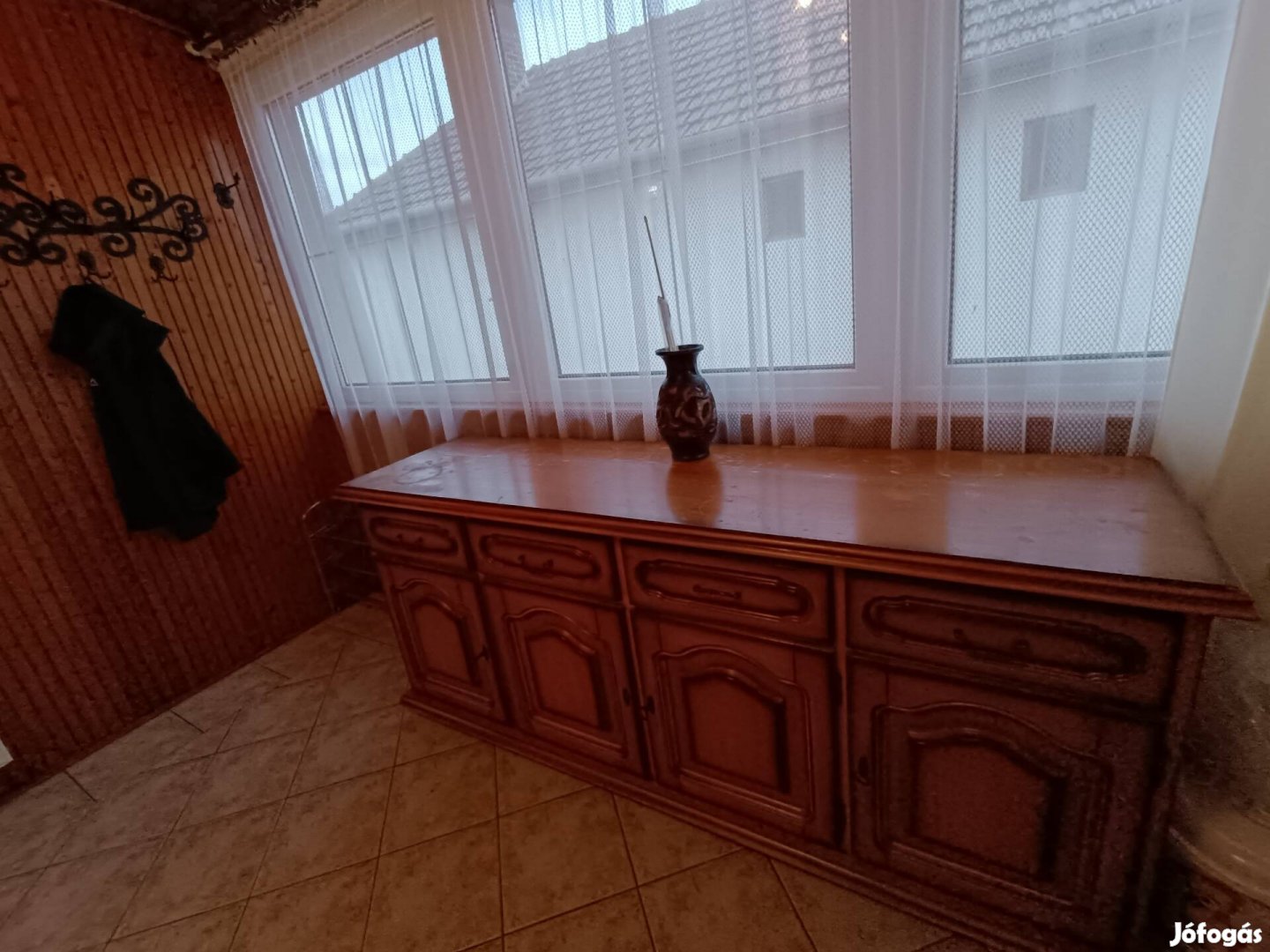 Nálunk cipős szekrény volt, de alapvetően ez egy találó szekrény. A teteje egy kis felújítást igényel. Tömörfa, nehéz bútor. Az ár alkuképes