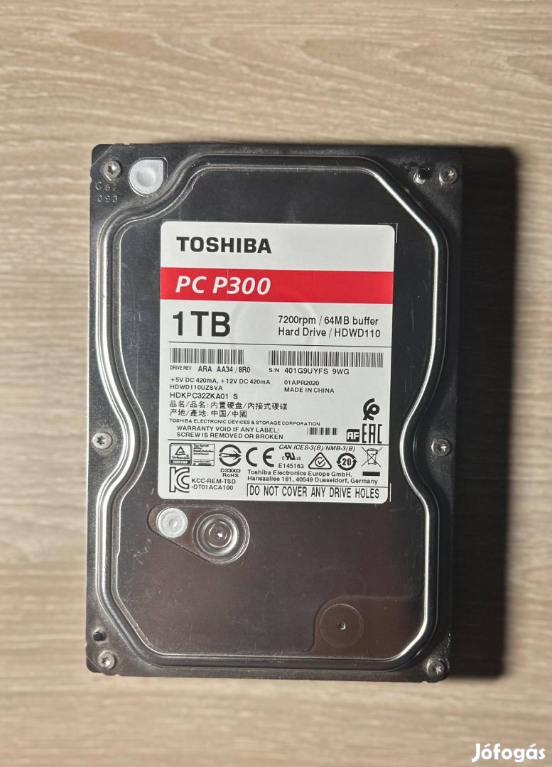 Eladóvá vált használt, hibátlan állapotban lévő Toshiba HDD.