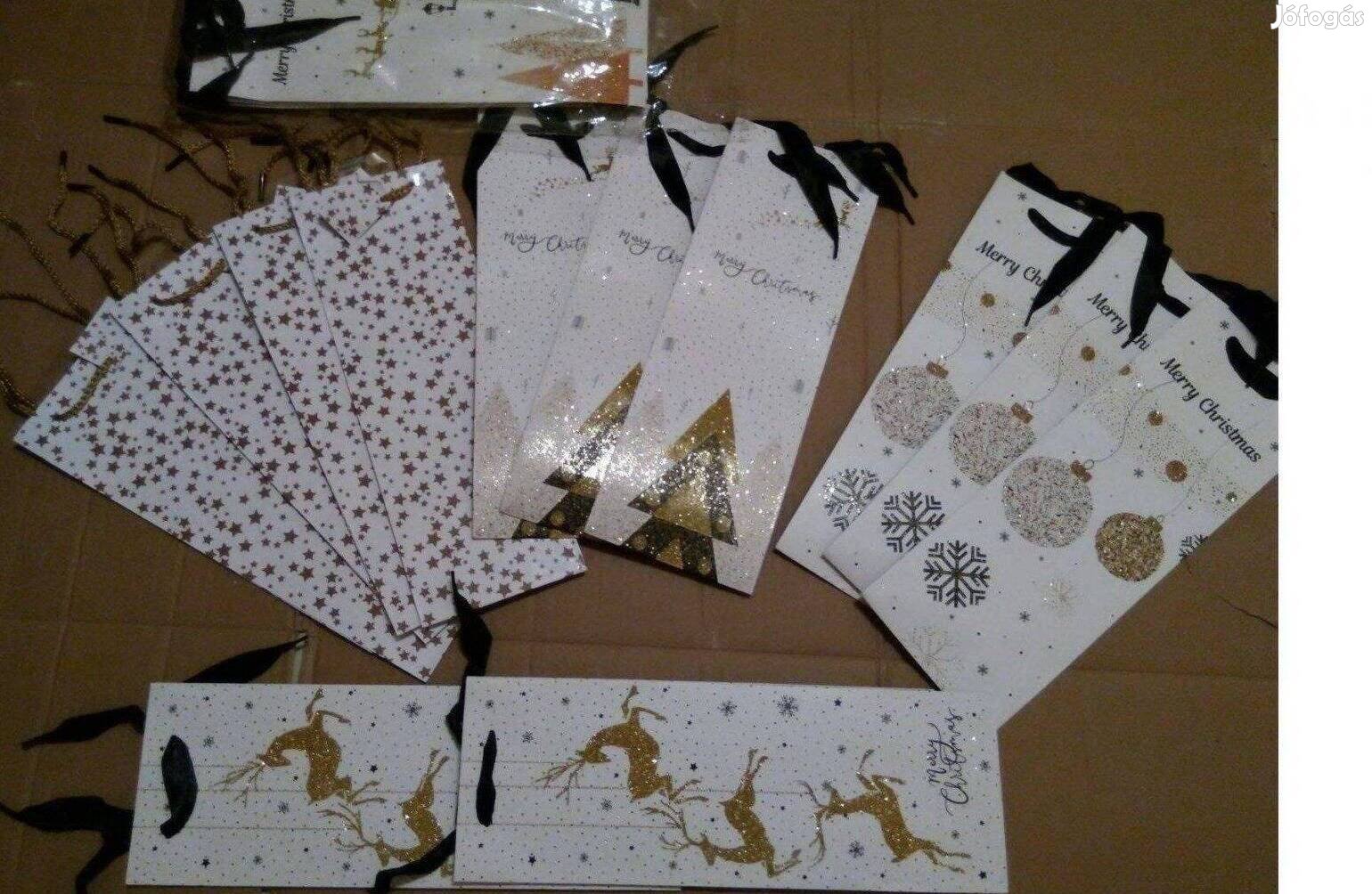Új ajándék italos táska, tasak különböző, karácsonyi vagy pötty mintával. Sima lakk felületű, vagy glitteres (csillámporos).