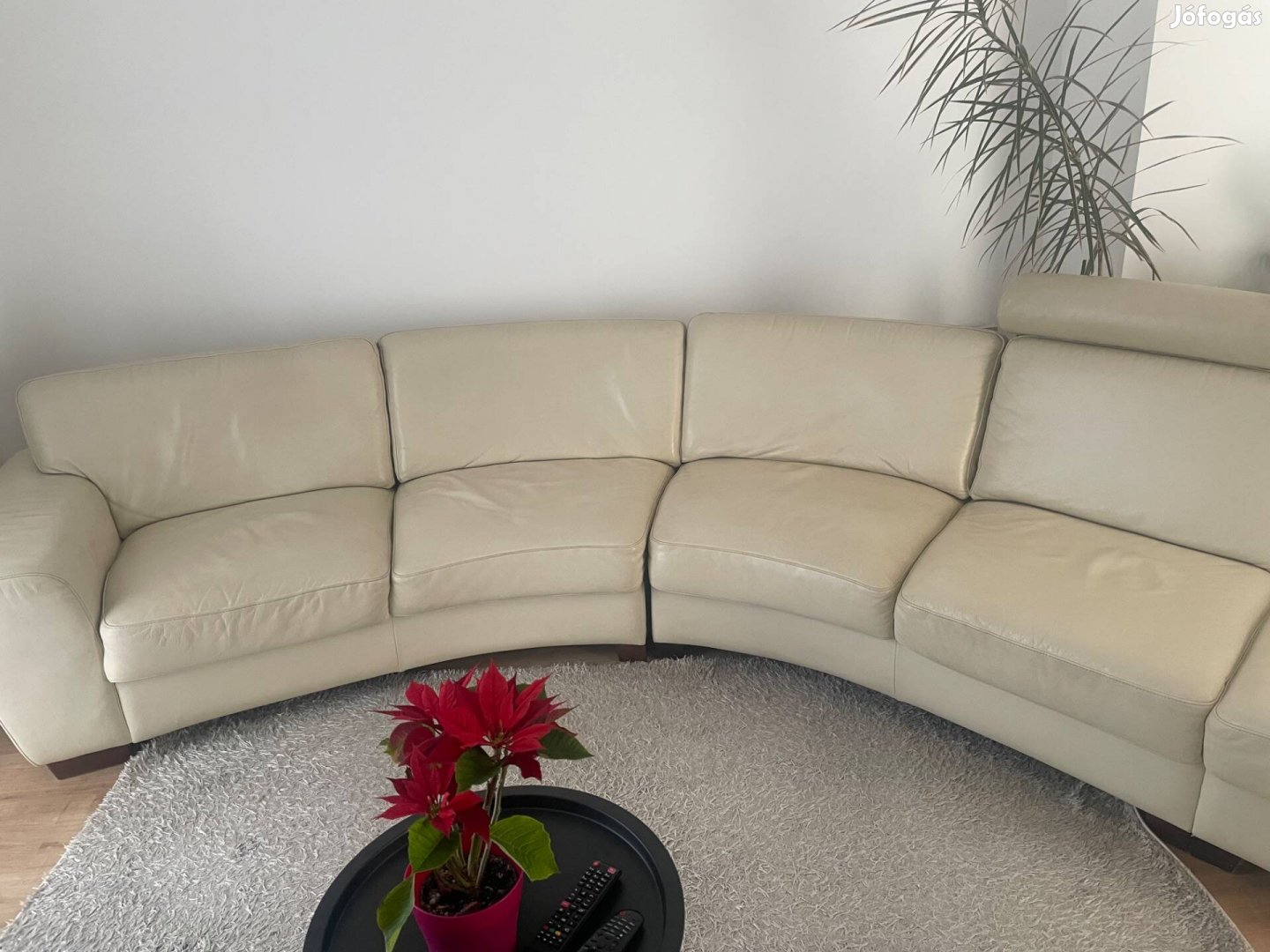 Andante bőr félkör alakú garnitúra, fejtámlával, folt- és szakadás mentes.