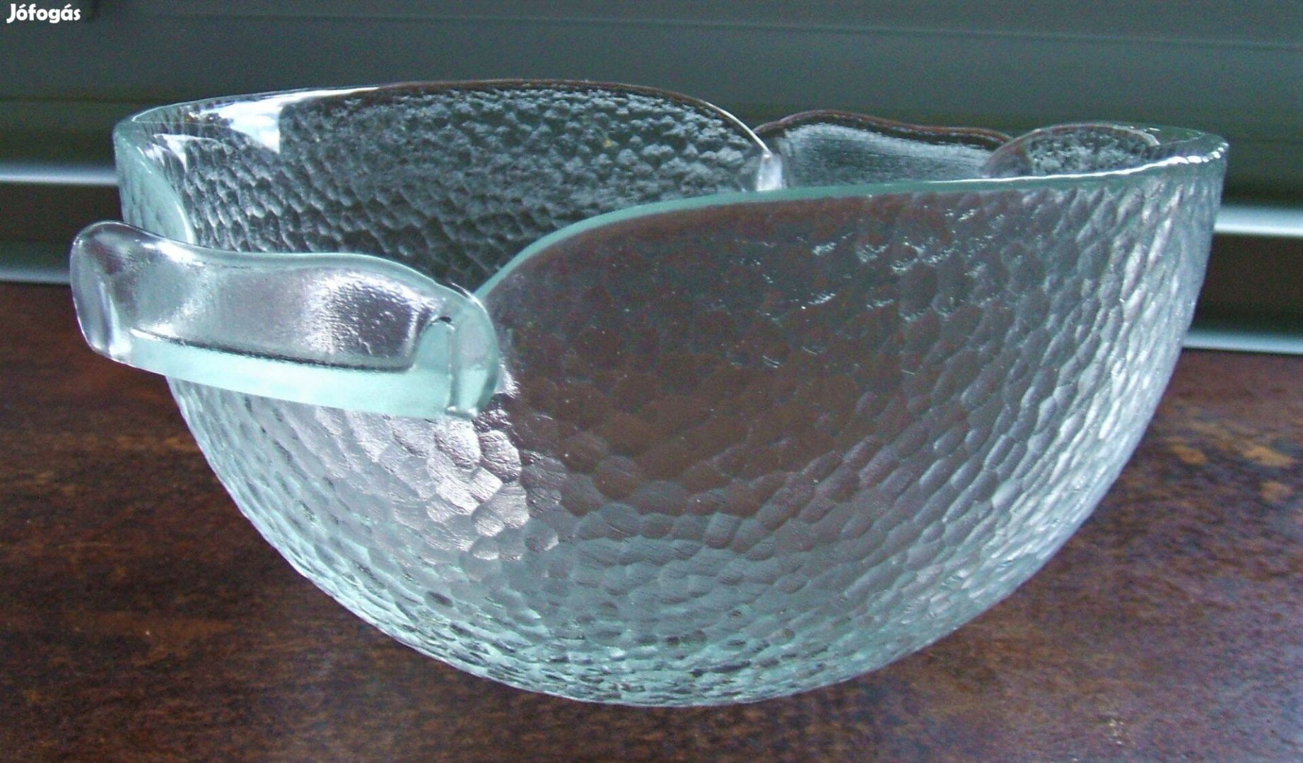 Eladó vastag üveg salátás tál.Átmérője:20cm (a füllel:23cm), magassága:11cm.