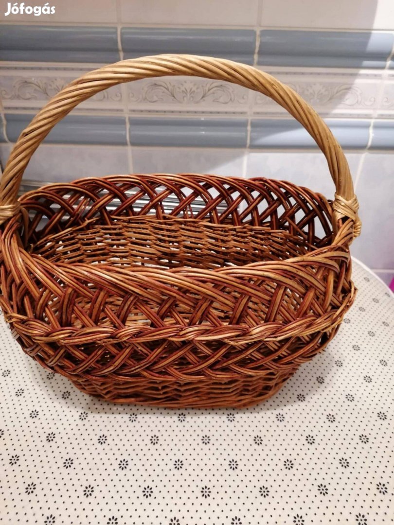 Miskolcon eladó használt vesszőből fonott kosár. Méretei: 21 cm magas, 31 cm hosszú, 18 cm széles. Azonnal elvihető.
