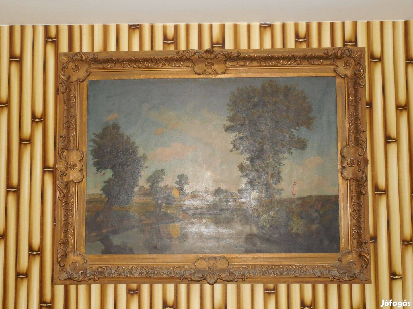 A festmény Vidovszy Béla ( 1883-1973 ) "Folyópart" olajfestménye, nagyon szép óarany keretben, méretei 123 x 92 cm keret külméret és 100 x 70 cm vászon méret, nagyon szép festmény, hibátlan, újszerű állapotban eladó !