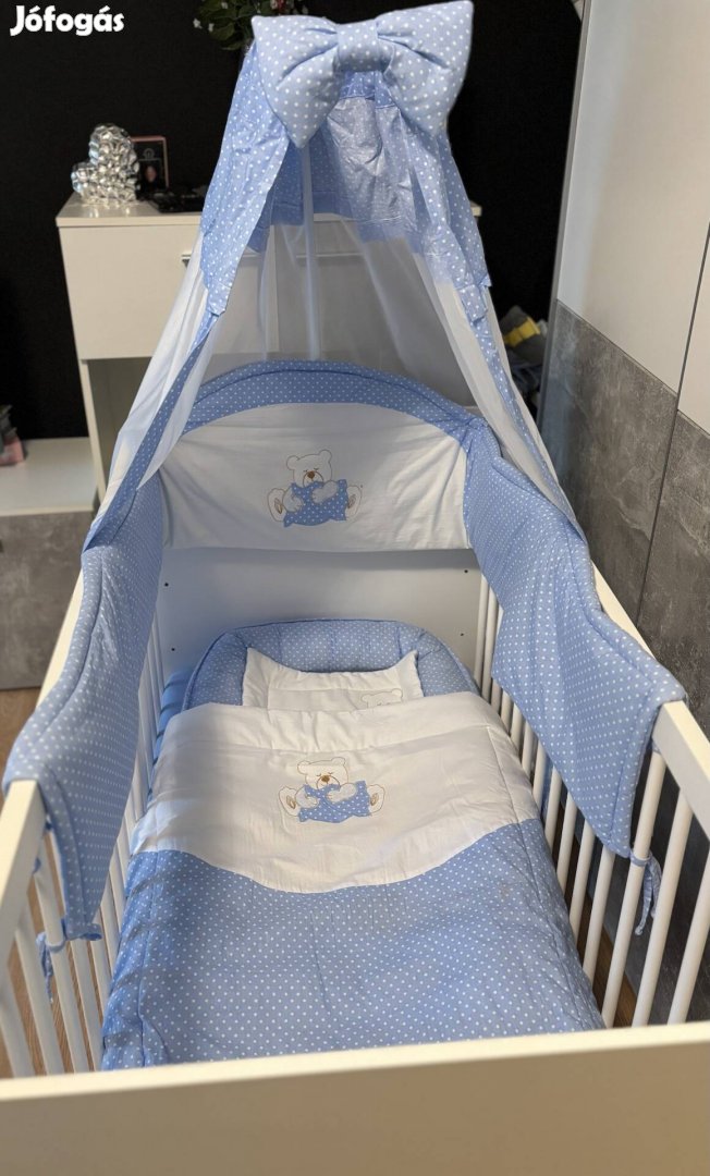 ?Eladó teljesen új, sosem használt kiságy, kókuszmatraccal, 3 fokozatban állítható. pelenkázóval, babafészekkel , vízhatlan gumis lepedő komplett szett ami a kepen látható ? Miskolcon átvehető szállításban nem tudok segiteni.