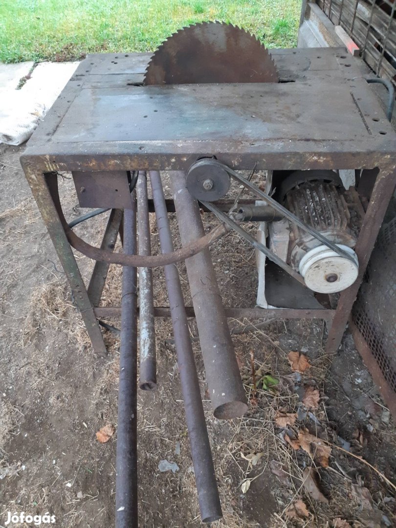 Robosztus, egyedi gyártású körfűrész, 380 V motorral meghajtva.