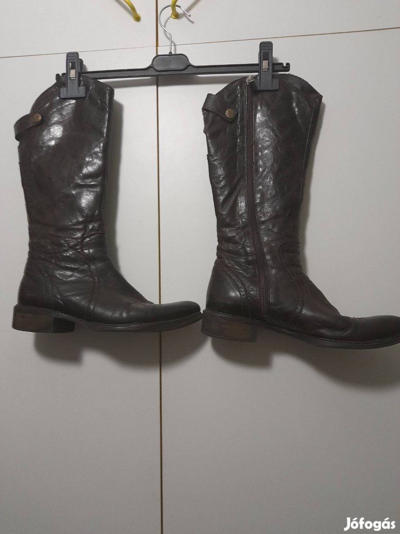 Vagány barna bőr csizma 38-39 lábra, akár motorosnak is meg felel, a képen látható állapotban.