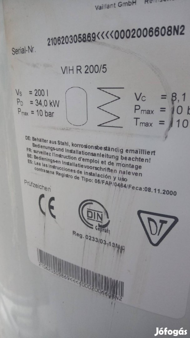 Eladó használt szigetelt, zománcozott, 1 hőcserélős puffertartály