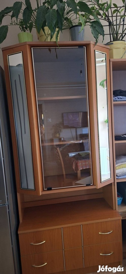 Cseresznye színű vitrines,fiókos szekrény (üres állapotban)