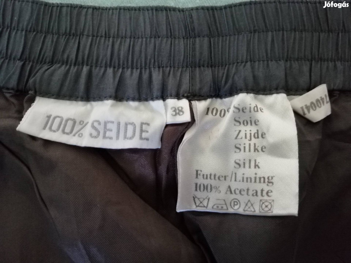 Sötétszürke, 100% selyem szoknya, egyenes szabású, oldalt zsebekkel.