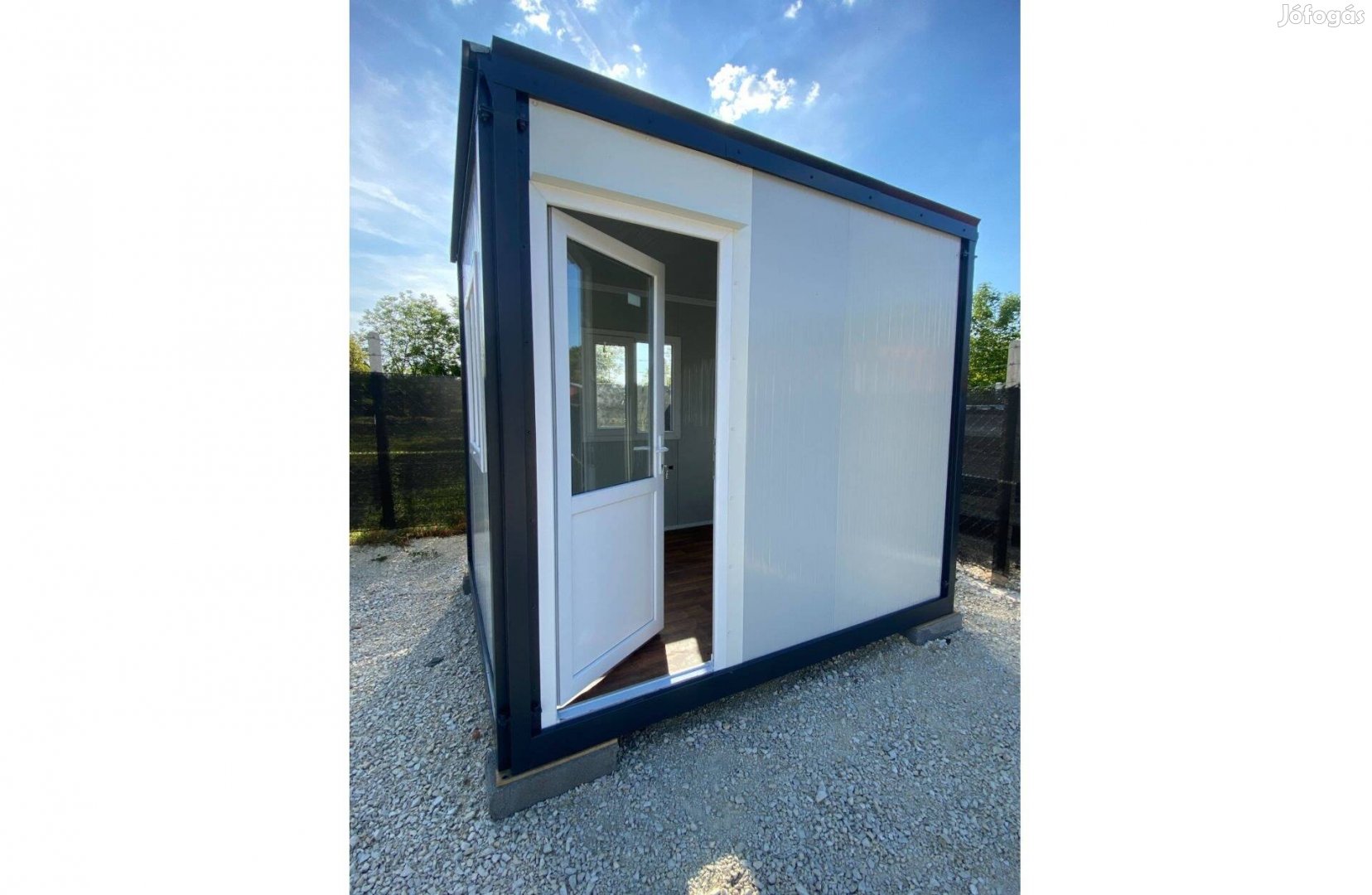 Eladó egy új , 10 lábas (3m x 2,4m alapterület, 7,2 m) iroda-/portakonténer, magasított kivitel 2,65 m magassággal.