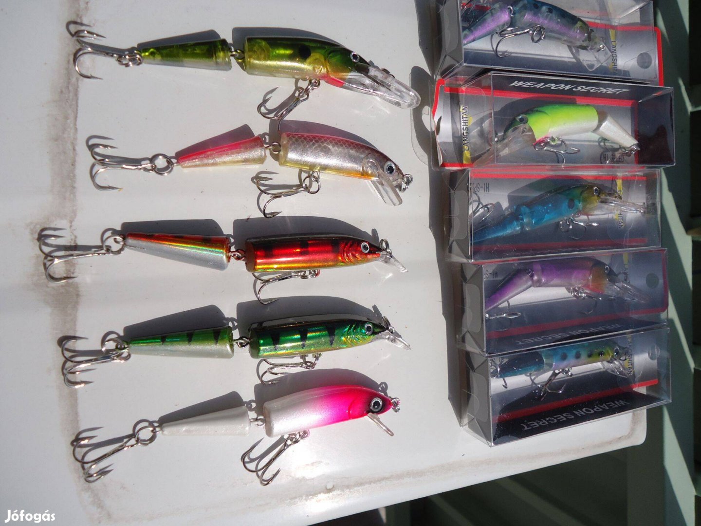 Teljesen újak. Dobozában tartott, csak a fotó kedvéért vettem ki belőle. 10 db 2 horgos műcsali. Újak. Mindegyikben rezgő golyó van, ami plusz ingereket vált ki a ragadózókból. Mindenféle víztípusra, fényviszonyra található benne fogós. Többféle méret-szín-súly-alak. Süllyedős-nem süllyedős...