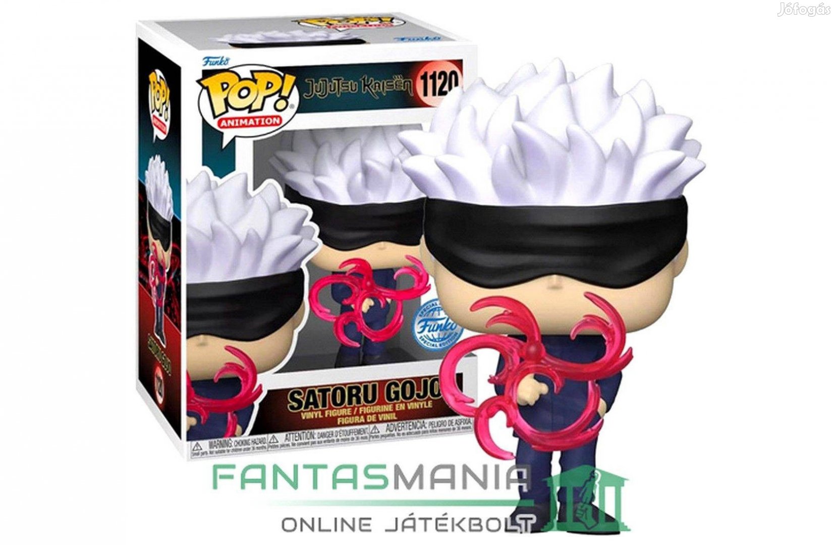 10cmes Funko POP 1120 Jujutsu Kaisen - Satoru Gojo (Red Tech) figura effekttel - Funko Special Edition nagyfejű Anime figura