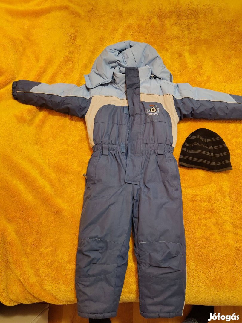 Eladó 116-os gyerek anorák, síruha, overál sapkával.