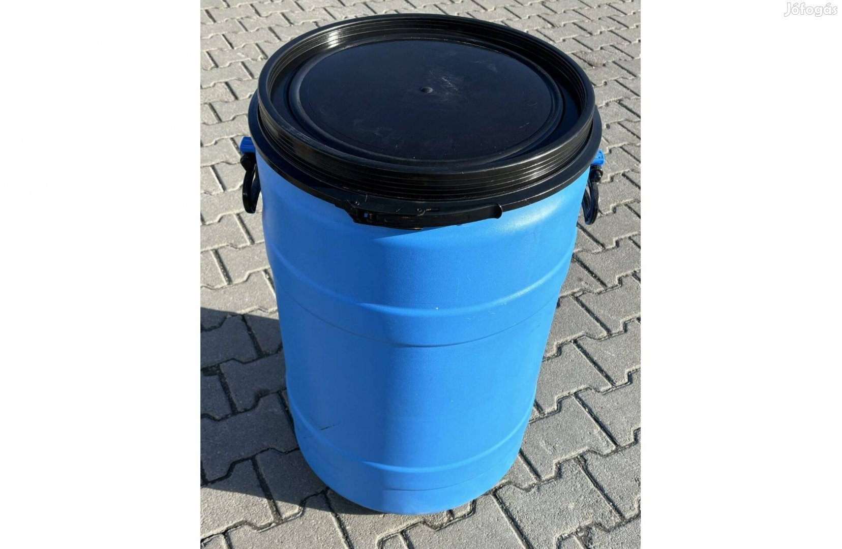 120 Literes, műanyag levehető tetejű, mosott, kék színű egyenes falú hordók Eladók (amerikai típus)