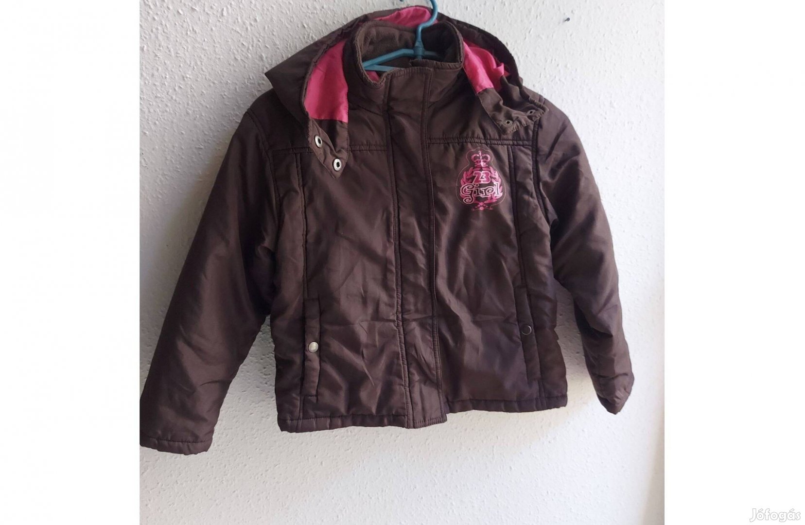 122/128-as barna színű dzseki, magenta színű béléssel kislánynak.