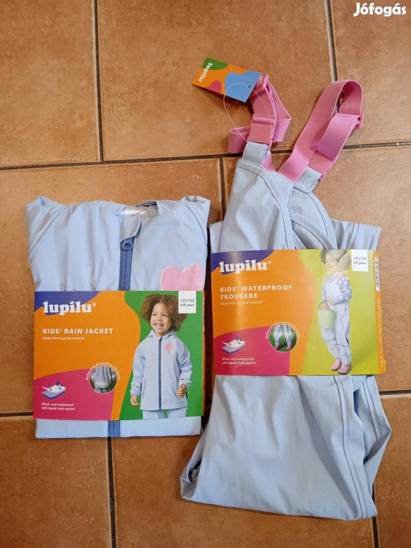 122-128-as új fiú béleletlen esőnadrág+kabát