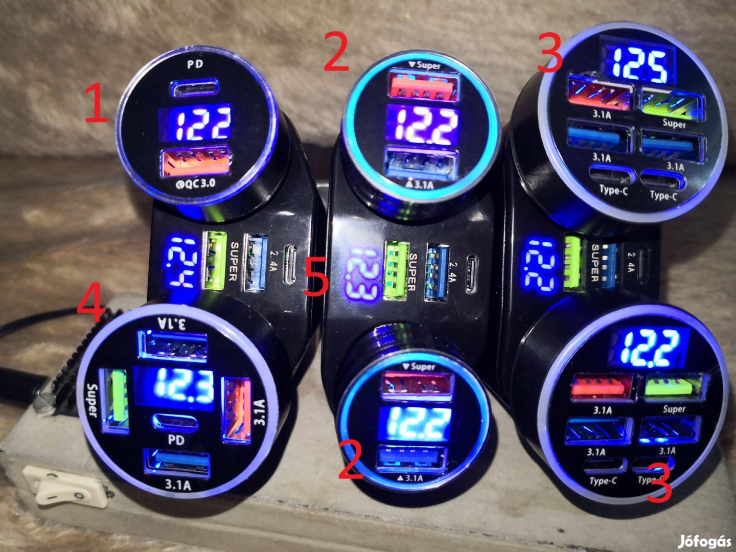 Nagy 12V elosztó és kijelzős töltő : háromezerötszáz