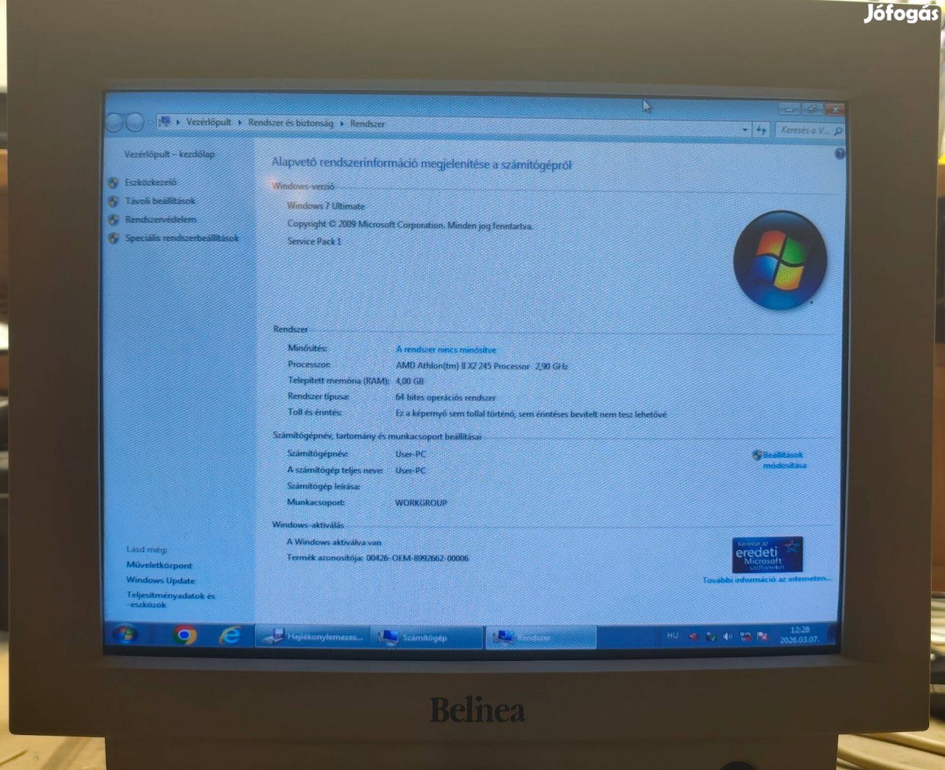 Nem búg, nem zúg, a képernyő sértetlen. Jobbfajta irodai monitor volt a maga korában. A menü gombjai is működnek.