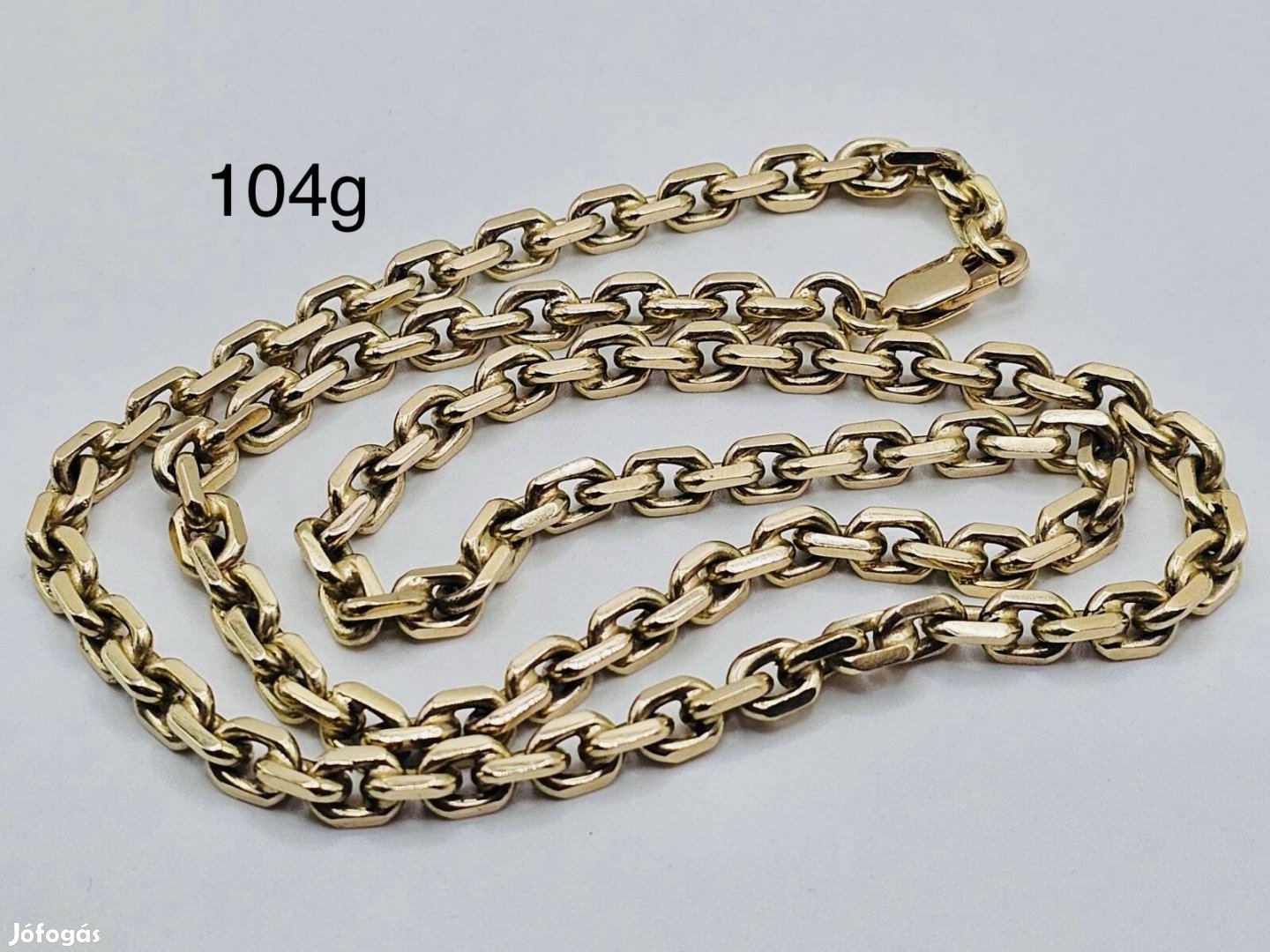 Eladó szinte új állapotban 14karátos arany anker nyakláncom. Tömör, reszelt. Súlya 104gramm 66cm hosszú. Kisebb láncot beszámolok.