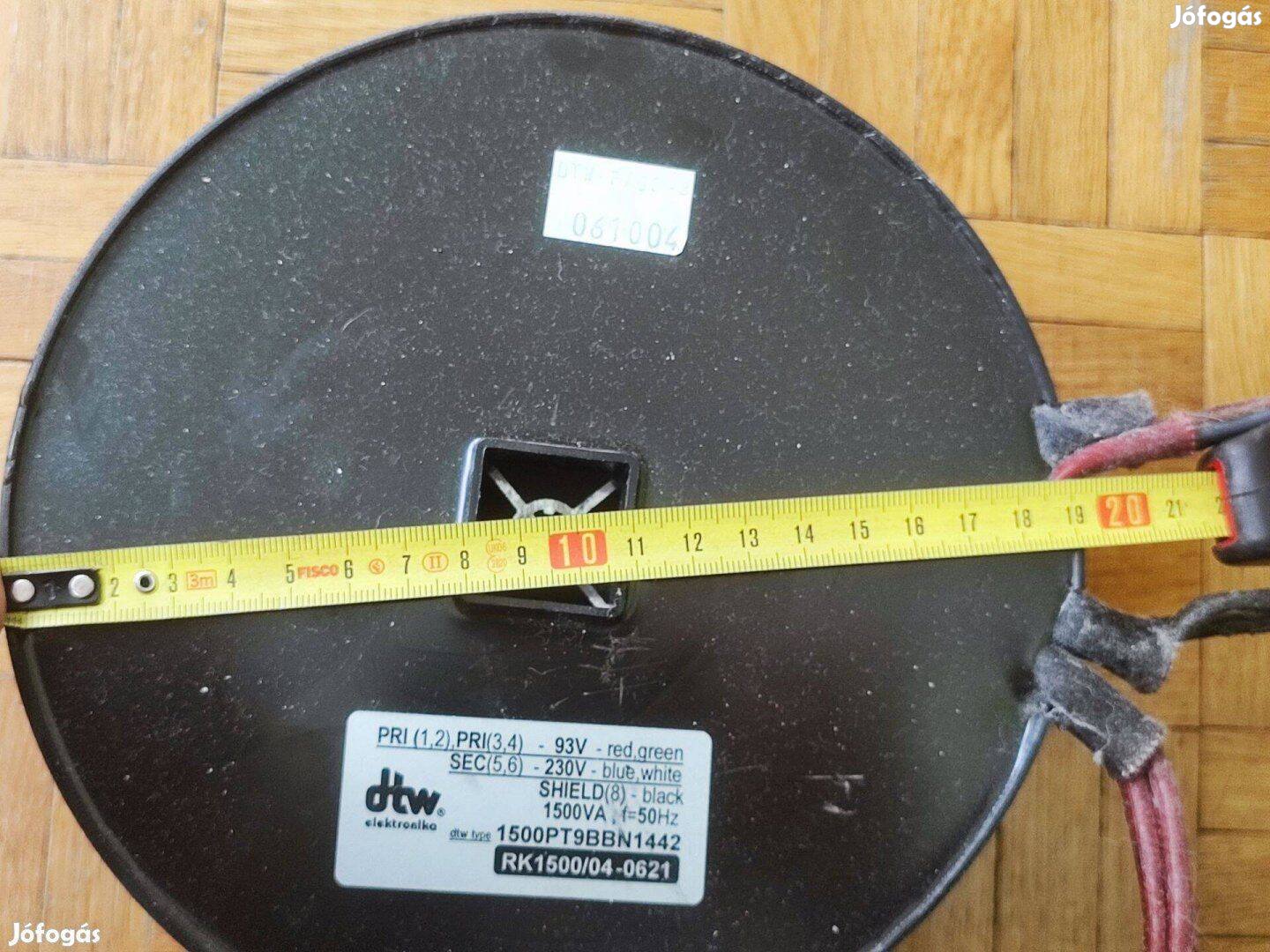 Eladó a képeken látható 1500VA 2X93V / 230V toroid transzformátor.