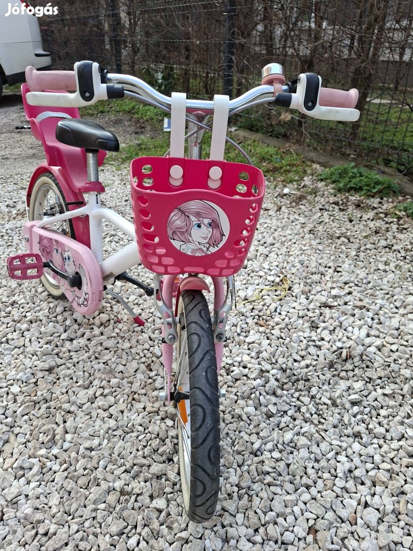 Használt, de jó állapotú 16-os Decathlon Btwin bringa. Pótkerékkel, kosárral és babaüléssel.