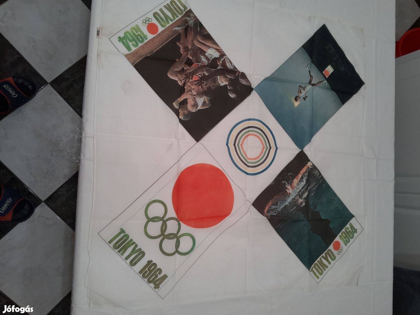 Eladó egy 1964 es Tokyo Olimpiai relikvia selyem sál eredeti korának megfelelő jó állapotban. Fényképekkel illusztrált komoly és ritka darabnak számít. Budapest 13. kerületben vehető át. Ára: 30000 ft.