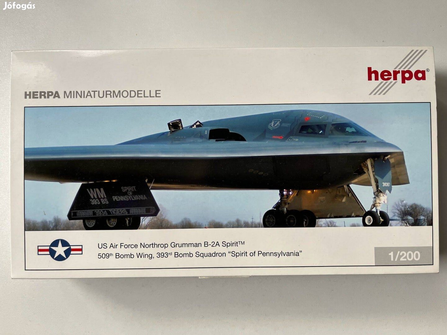 Eladó egy 1:200 Herpa 554848 USAF Northrop Grumman B-2A "Spirit", 393rd Bomb Squadron "Spirit of Pennsylvania" repülőgép modell.