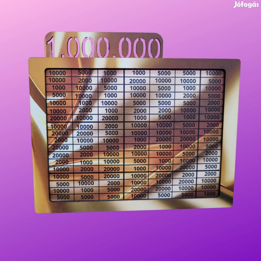 A táblán szereplő összegek együtt pontosan 1 000 000 Ft-ot adnak ki.