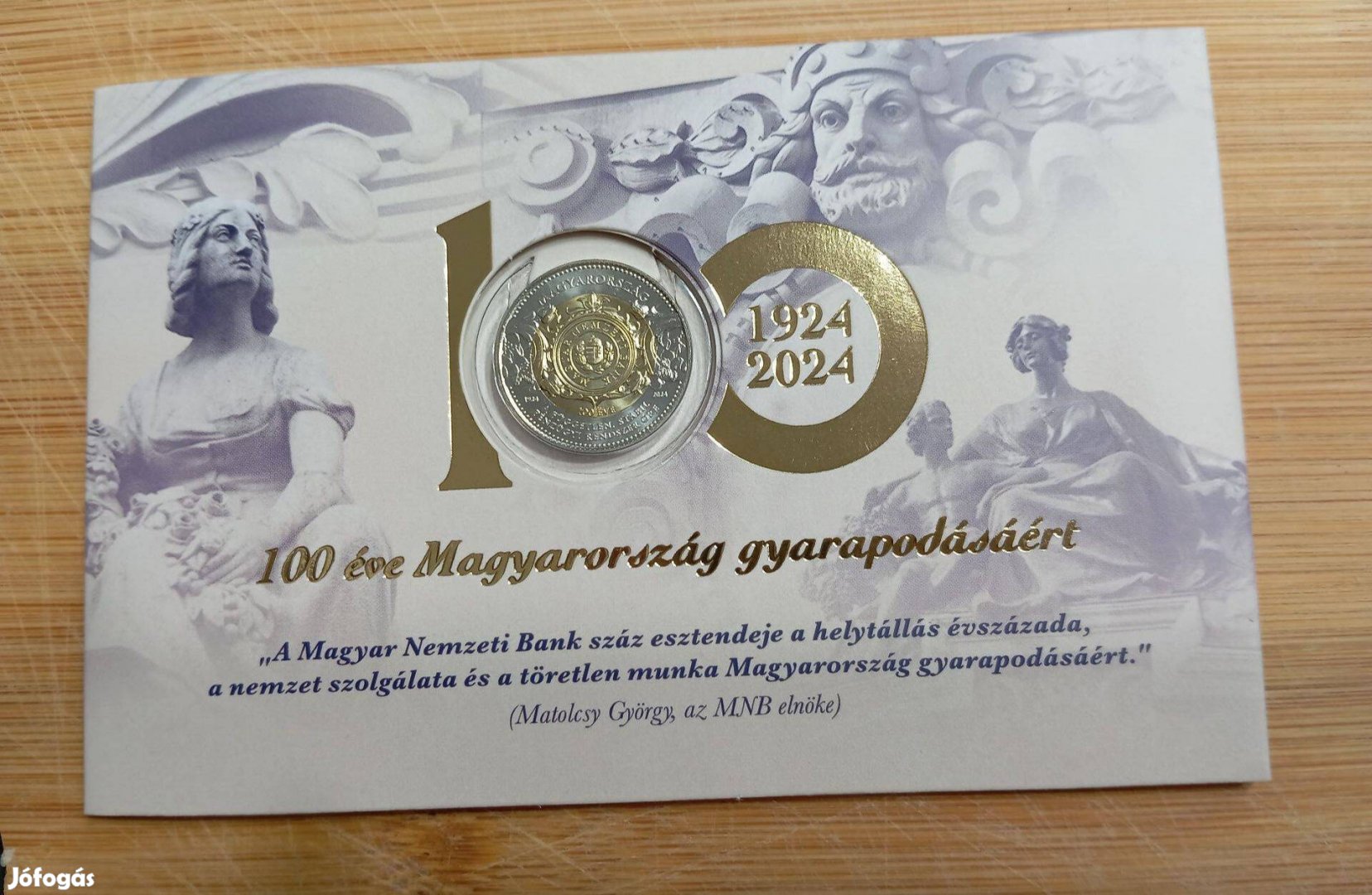 2024. 100 éve Magyarország gyarapodásáért. MNB 100 éves forg. 100 Ft. Díszcsomagolás, első napi veret.