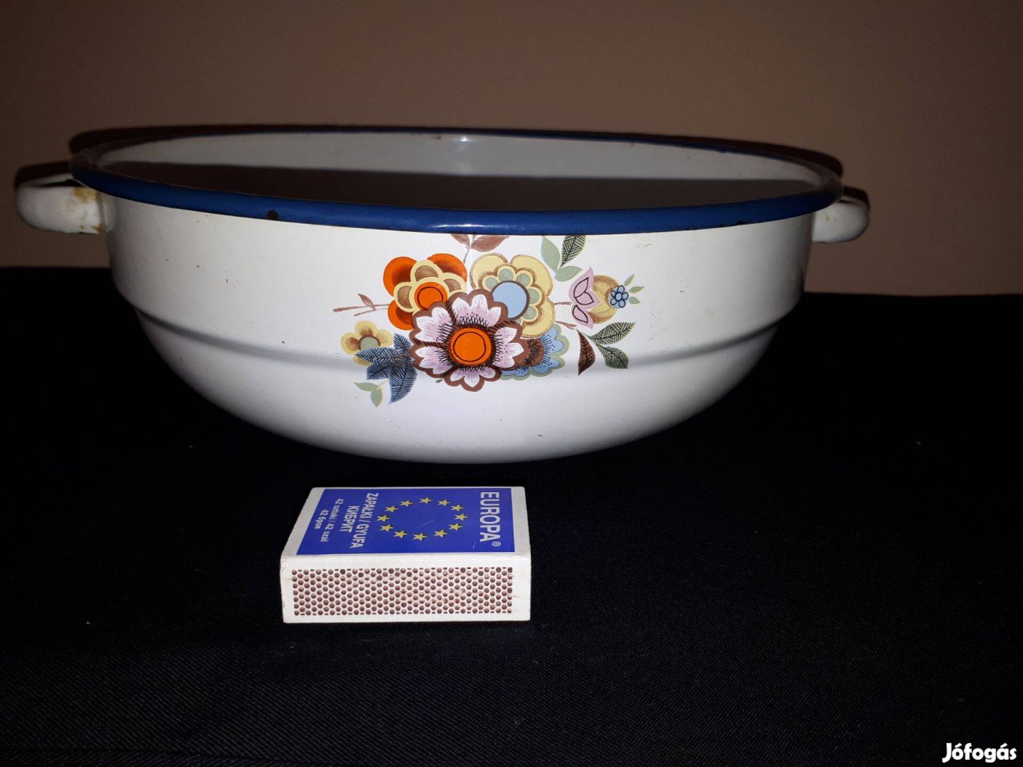 Eladó a képen látható 20 cm átmérőjű, virágos bonyhádi zománcos tál. Korához képest nagyon jó állapotban megmaradt.