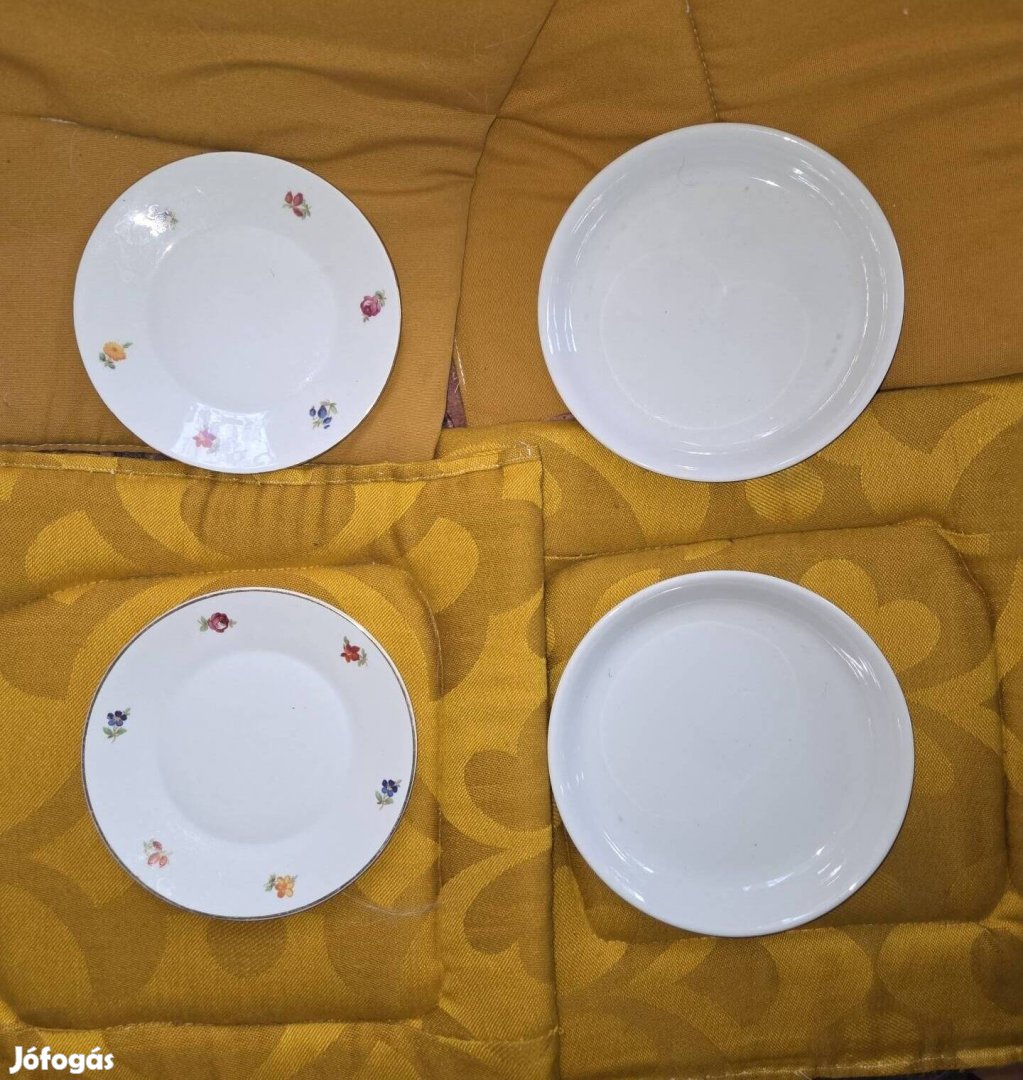 2 sima fehér 19 cm es 2 db virágmintás 17 cm sütemenyes tányér ar// db