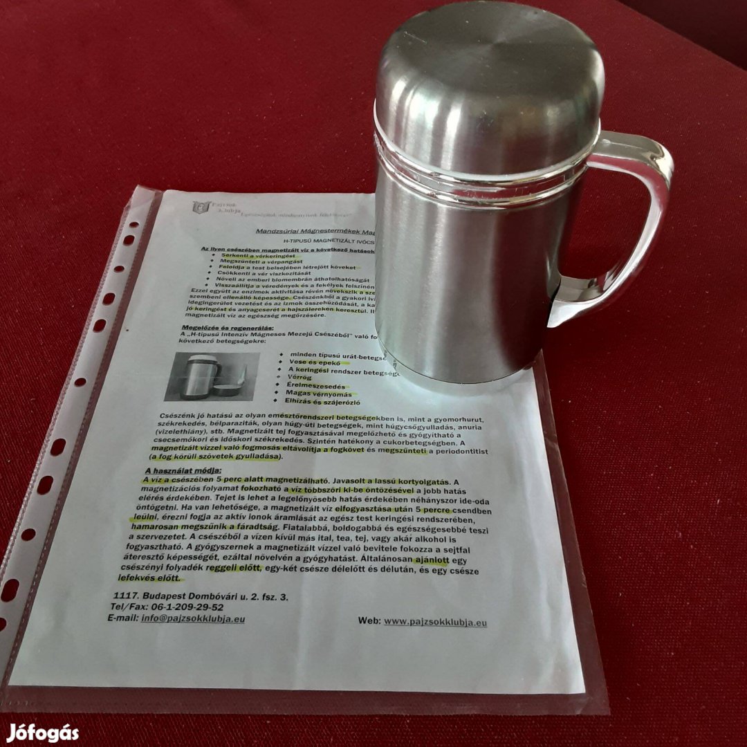 A pohár legfontosabb tulajdonsága,hogy lúgosíthatja a vizet,ezzel a szervezetben lévő savas közeget közömbösítheti,ezzel regenerálja azt.