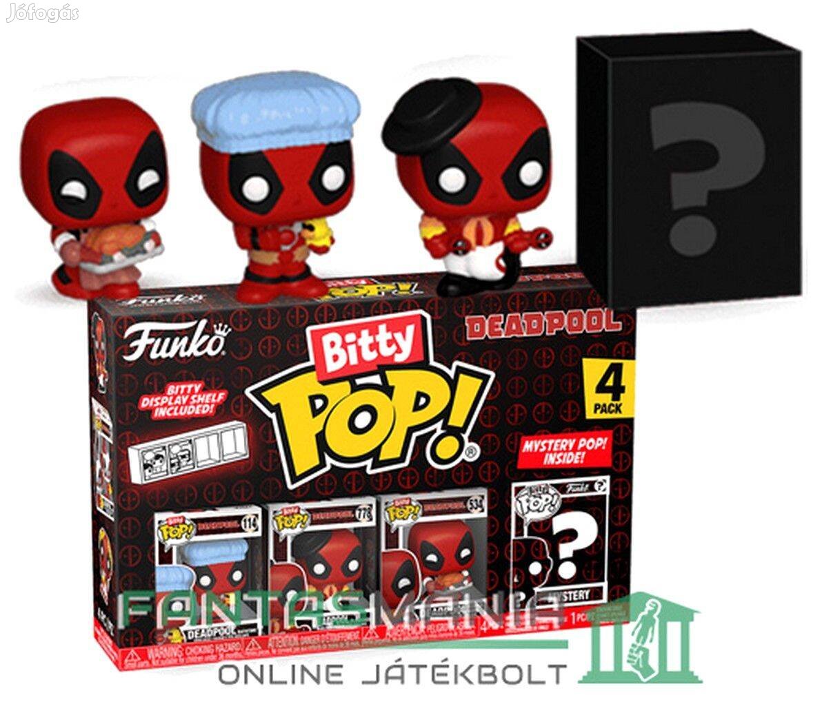 2,5cmes Funko POP Bitty Deadpool figura 4-Pack: Supper HERO Deadpool, Bathtime Deadpool, Flamenco Deadpool + 1 Mystery POP - 4db mini Marvel szuperhős nagyfejű karikatúra figura szett