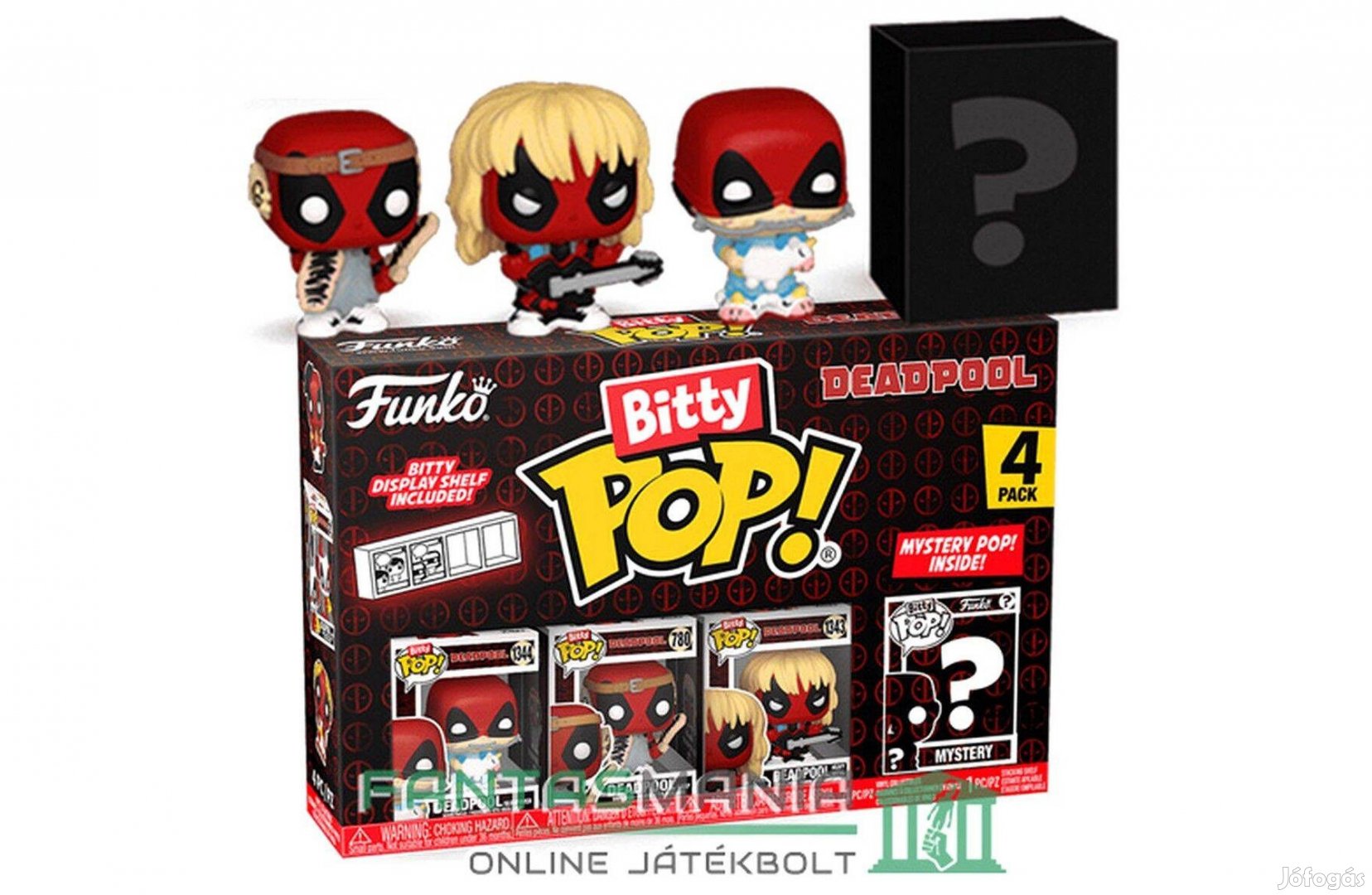 2,5cmes Funko POP Bitty Deadpool figura 4-Pack: LARP Deadpool, Heavy Metal Deadpool, Sleepover Deadpool + 1 Mystery POP - 4db mini Marvel szuperhős nagyfejű karikatúra figura szett