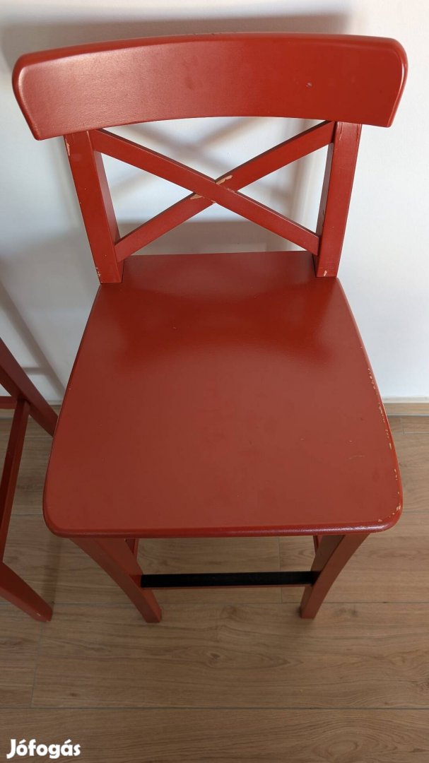 Különleges piros árnyalatú Ikea Ingolf bárszékek. Használati kopásokat fotóztam.
