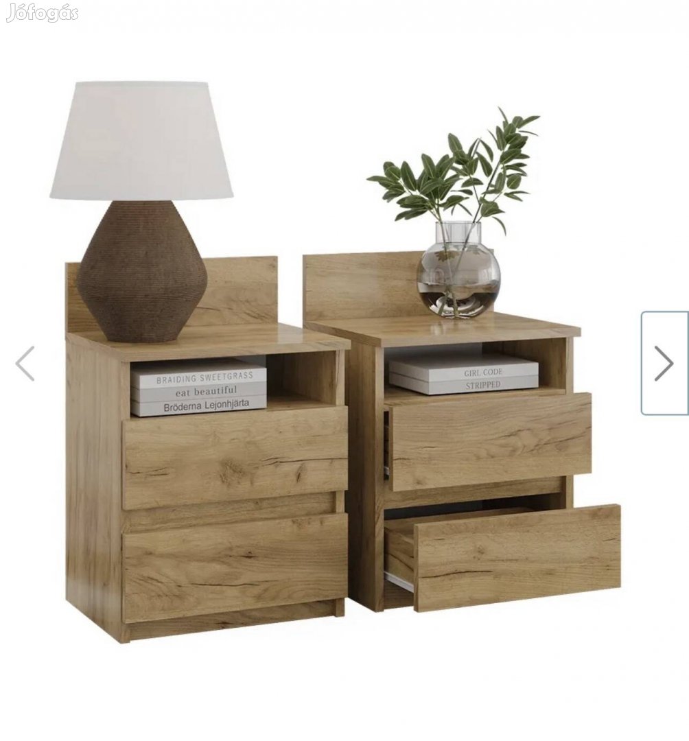Arany tölgy Éjjeliszekrény pár, 2 fiókkal, polcos tárolóval
