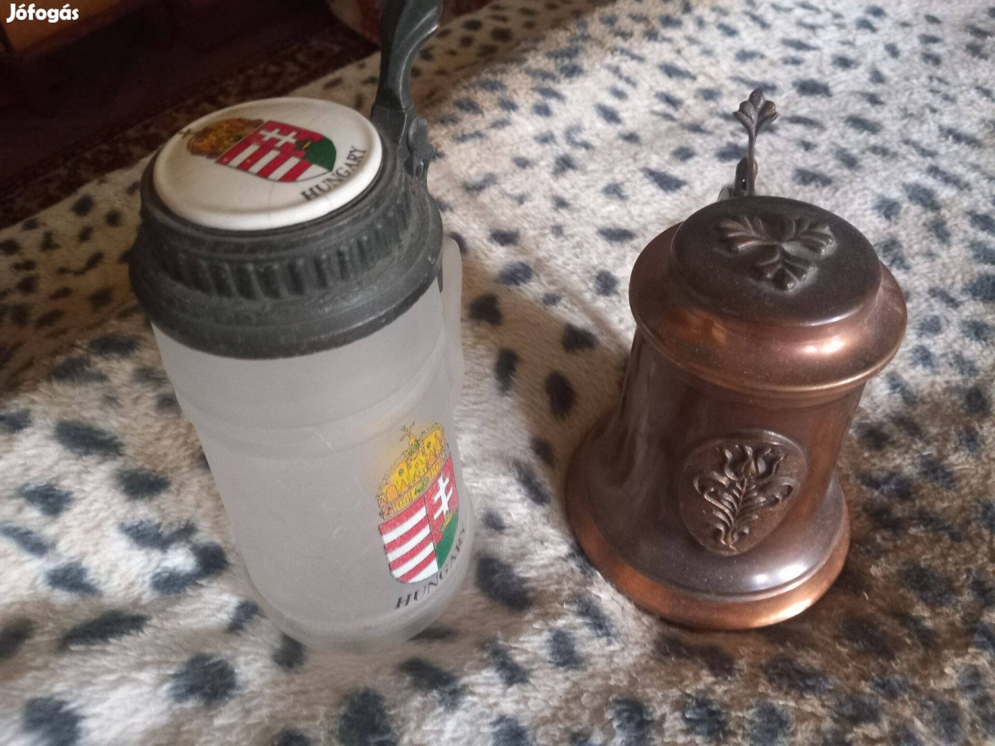 2 db fedeles söröskorsók eladók Egyik üveg a másik bronz ötvözettel.